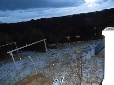 Tudo começou ontem... Fomos á equitação quando no meio do nosso passeio começa a cair granizo e a chover. Primeiro eu pensei "Bolas" mas depois até foi fantástico andar-mos assim a calópe *imaginem* Quando a minha Mãe nos foi buscar (tinhamos chegado do passeio) não estava a chover...mas mesmo quando chegou ás subidas para a minha casa começou a truvuada e caiu granizo TAO grande que eu até pensava que o vidro do carro se ia estragar... a estrada escorregadia...toda branca...os campos todos brancos parecia cobertos de uma manta branca! E nós dentro do carro... tinhamos de andar tão devagar para não acontecer nada e ainda porcima aquelas subidas 'o'